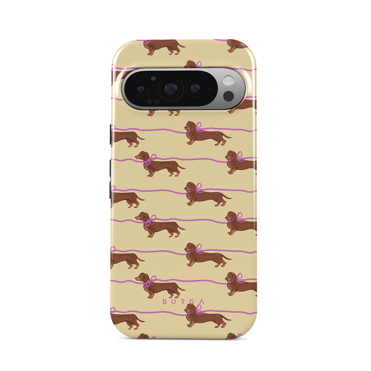 This Google Pixel 9 Pro phone case design doesn’t believe in time, only vibes. It features sassy sausage dogs with bows who, like you, are running 15 minutes behind—and blaming Mercury.