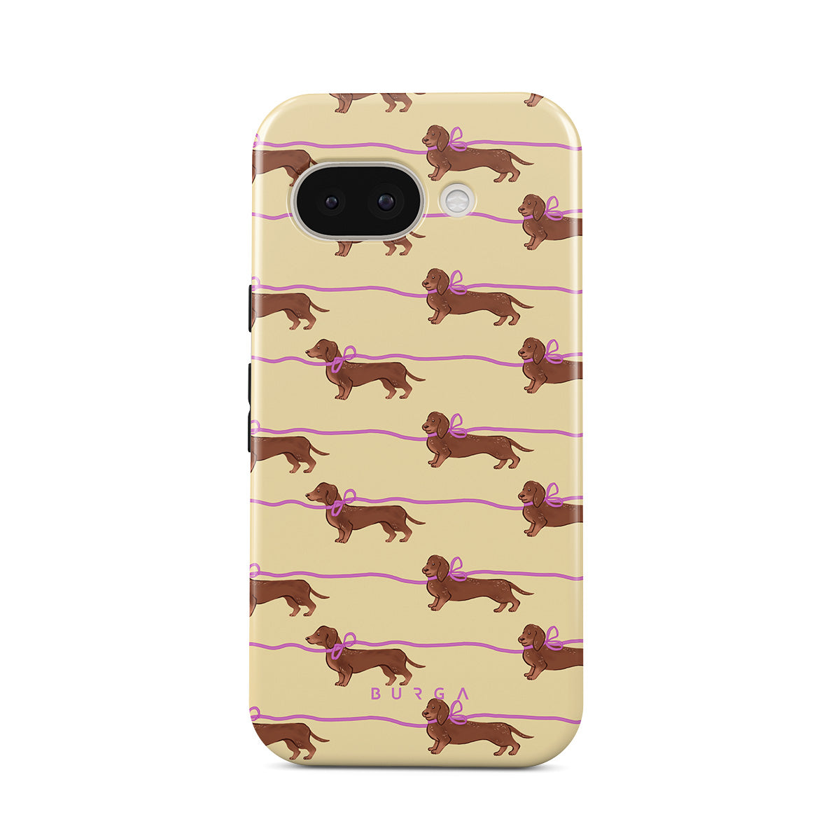 This Google Pixel 9a phone case design doesn’t believe in time, only vibes. It features sassy sausage dogs with bows who, like you, are running 15 minutes behind—and blaming Mercury.
