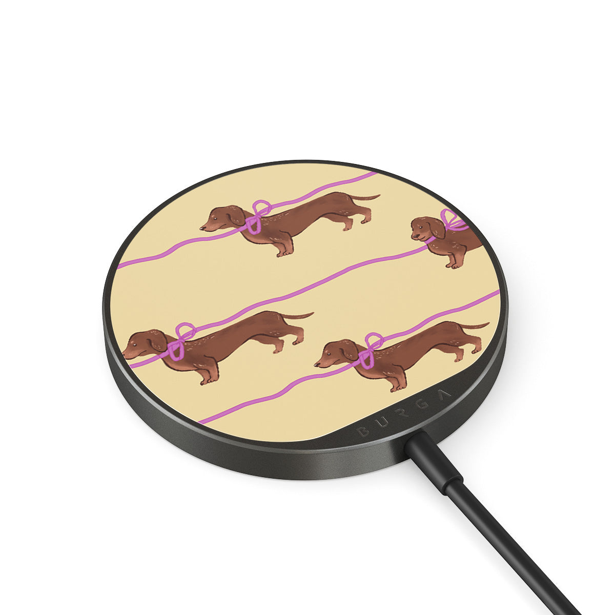 The 1.5m integrated cord makes it easy to charge wherever you are — at the office, chillin’ on the sofa, or killing time at the airport lounge. Plus, the BURGA glass back gives you 500+ prints to choose from, so your charger looks as good as your case.