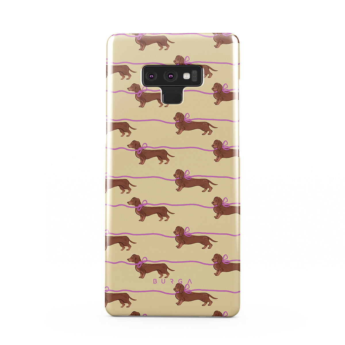 This Samsung Galaxy Note 9 phone case design doesn’t believe in time, only vibes. It features sassy sausage dogs with bows who, like you, are running 15 minutes behind—and blaming Mercury.