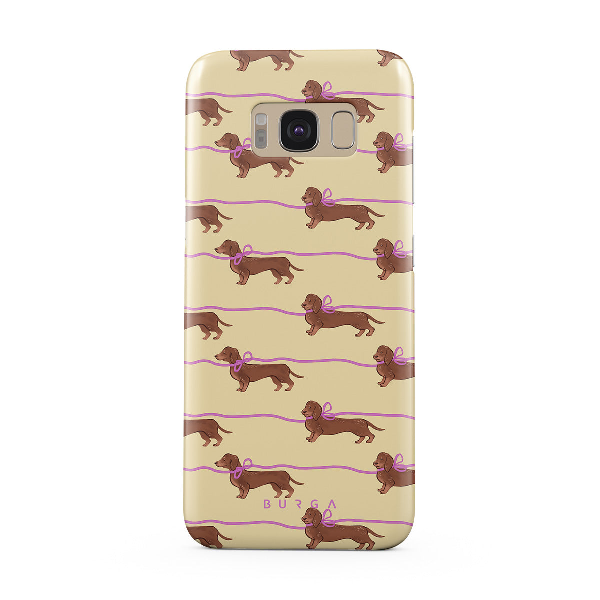 This Samsung Galaxy S8 phone case design doesn’t believe in time, only vibes. It features sassy sausage dogs with bows who, like you, are running 15 minutes behind—and blaming Mercury.