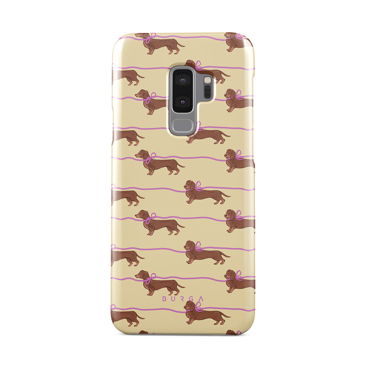 This Samsung Galaxy S9 Plus phone case design doesn’t believe in time, only vibes. It features sassy sausage dogs with bows who, like you, are running 15 minutes behind—and blaming Mercury.