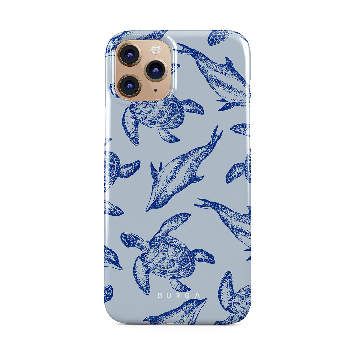 A beautiful design featuring lively turtles and dolphins playfully dancing in serene light blue water. Dive into the ocean's rhythm with our Aquatic Dance iPhone 11 Pro Max case.