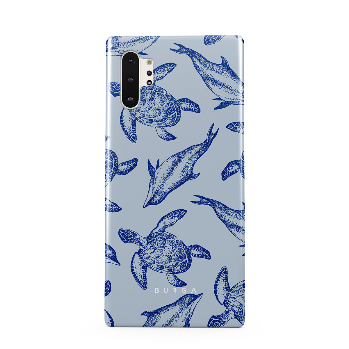 A beautiful design featuring lively turtles and dolphins playfully dancing in serene light blue water. Dive into the ocean's rhythm with our Aquatic Dance Samsung Galaxy Note 10 Plus case.