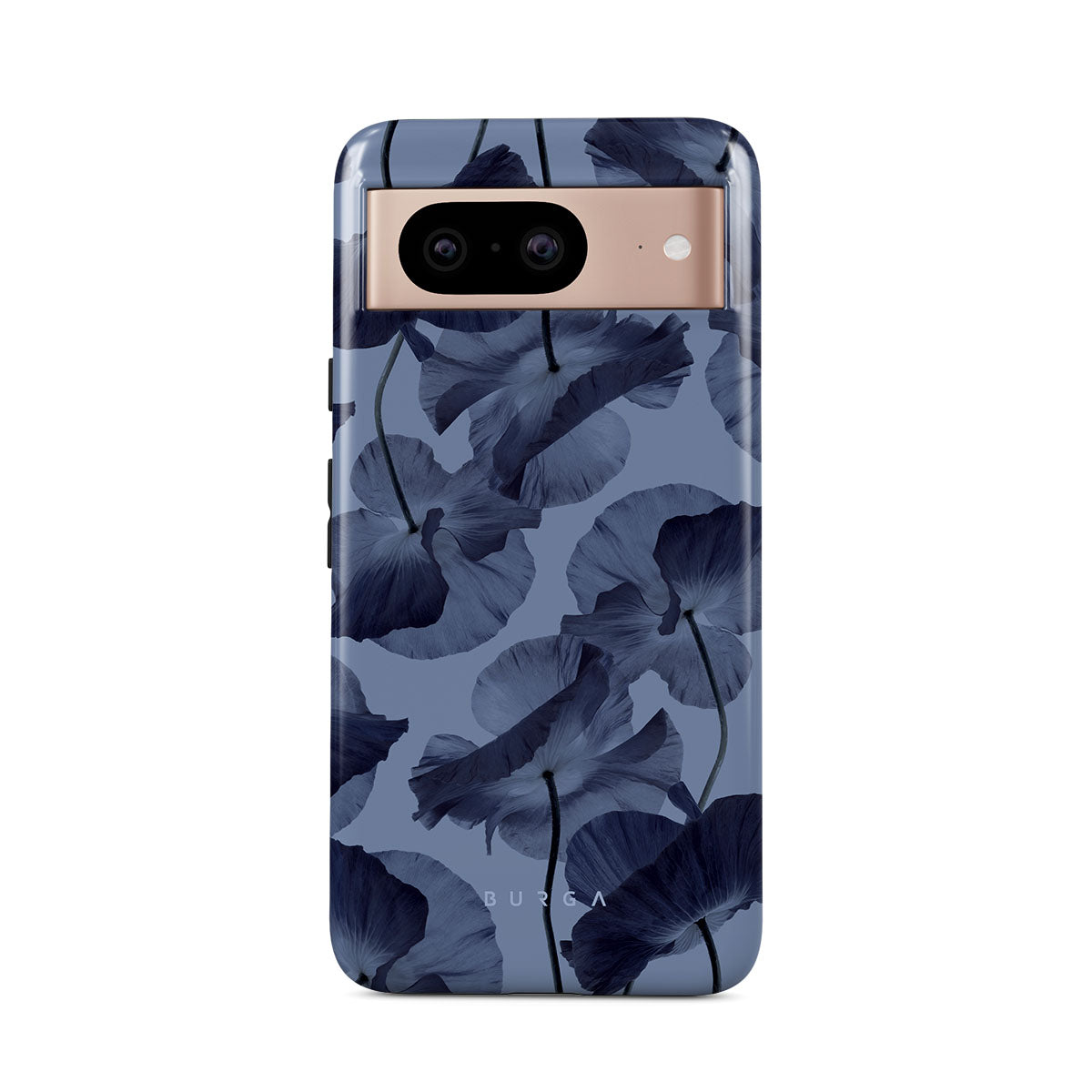 This Google Pixel 8 phone case design blends seamlessly into any workspace, offering a polished yet mysterious touch. Mixing deep blue flowers and a bright blue background, our Archives pattern is perfect for those who like their style to whisper, not shout.