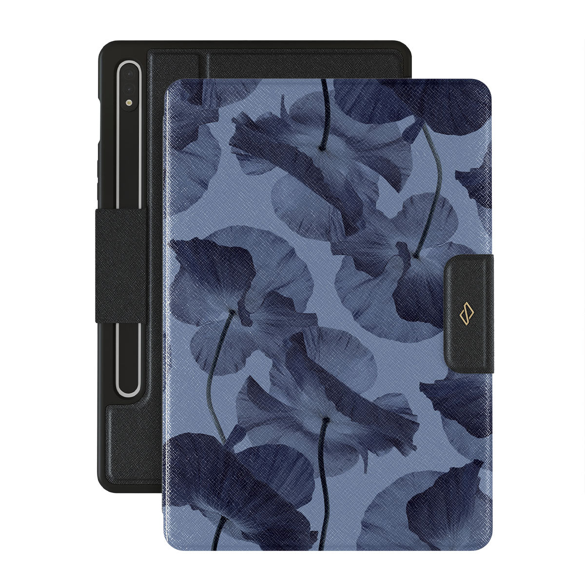 This Samsung Galaxy Tab S8/S7 folio case design blends seamlessly into any workspace, offering a polished yet mysterious touch. Mixing deep blue flowers and a bright blue background, our Archives pattern is perfect for those who like their style to whisper, not shout.