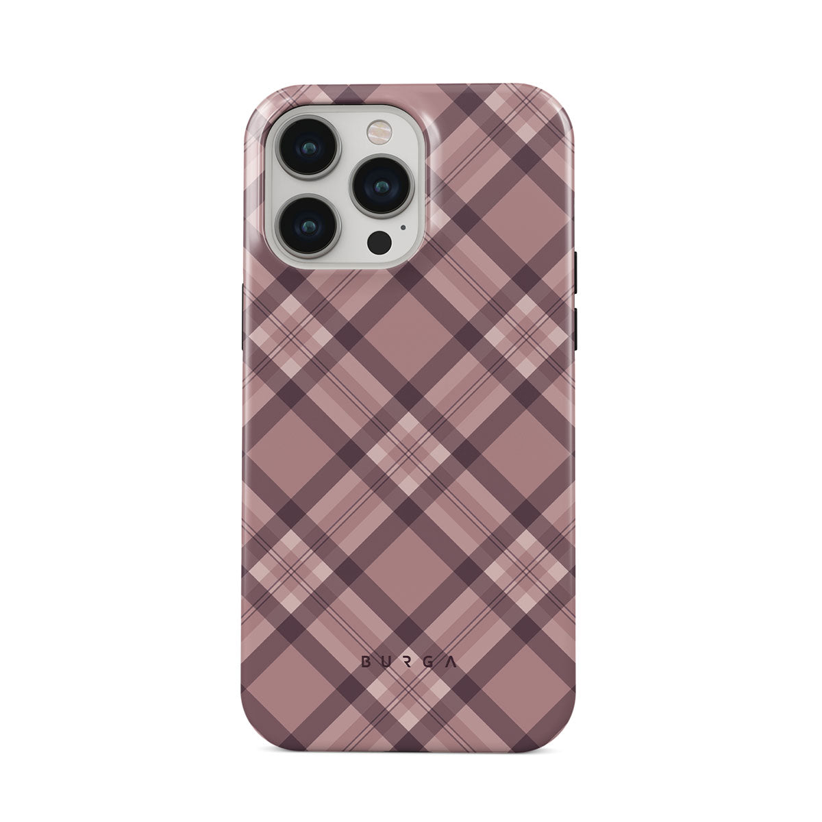 Made for those who hustle hard and look sharp. Our ASAP iPhone 13 Pro phone case design features a sleek rosé-gray background with diagonal plaid in soft grey and deep pink—mixing modern flair with understated elegance. For the pros who know that style and speed go hand-in-hand.