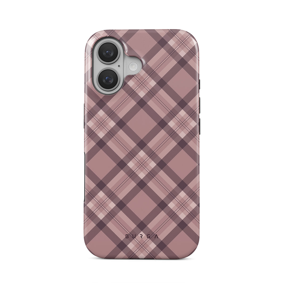 Made for those who hustle hard and look sharp. Our ASAP iPhone 16 Plus phone case design features a sleek rosé-gray background with diagonal plaid in soft grey and deep pink—mixing modern flair with understated elegance. For the pros who know that style and speed go hand-in-hand.