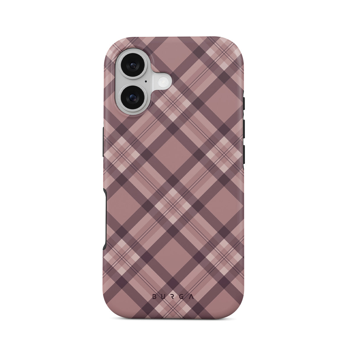Made for those who hustle hard and look sharp. Our ASAP iPhone 17 phone case design features a sleek rosé-gray background with diagonal plaid in soft grey and deep pink—mixing modern flair with understated elegance. For the pros who know that style and speed go hand-in-hand.