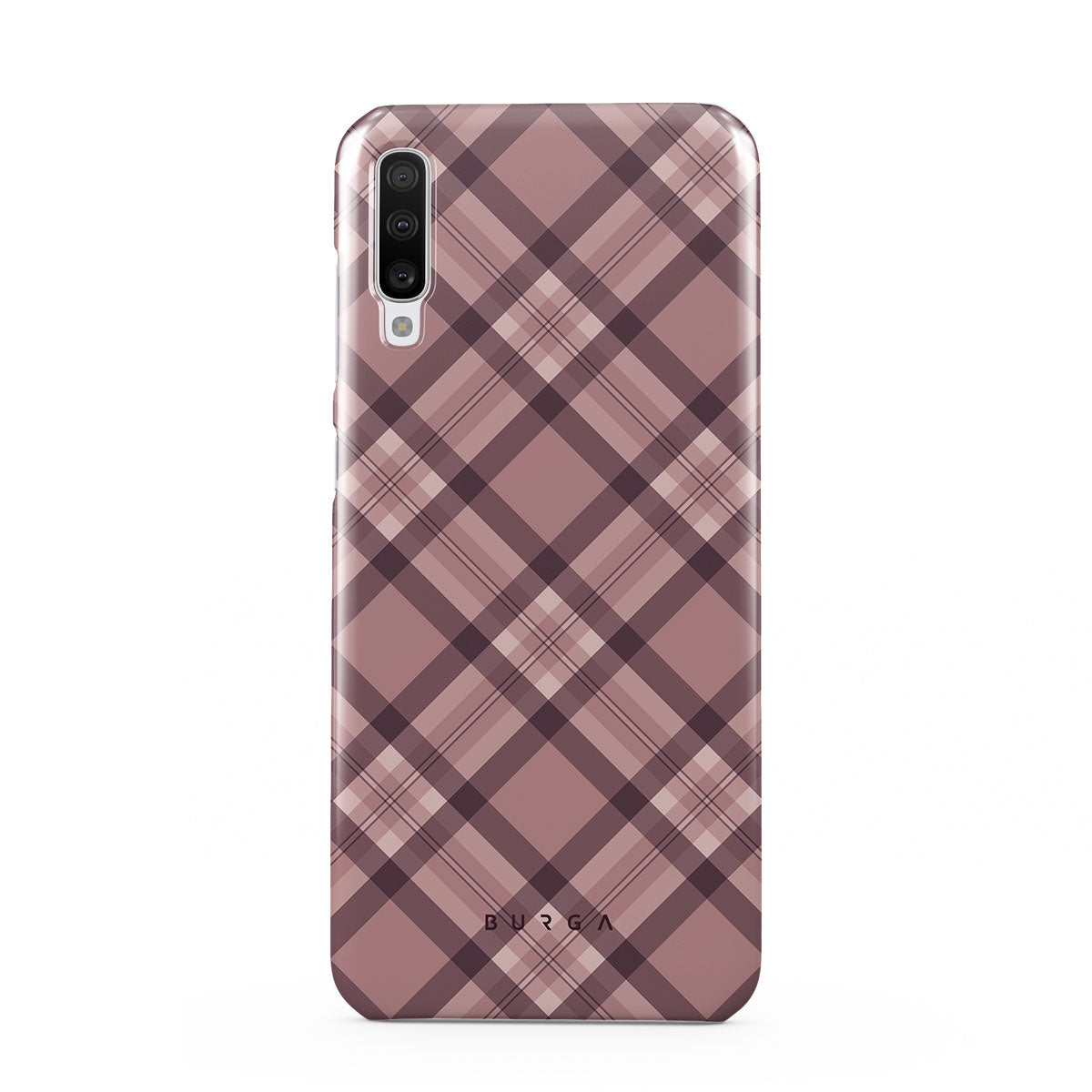 Made for those who hustle hard and look sharp. Our ASAP Samsung Galaxy A70 phone case design features a sleek rosé-gray background with diagonal plaid in soft grey and deep pink—mixing modern flair with understated elegance. For the pros who know that style and speed go hand-in-hand.