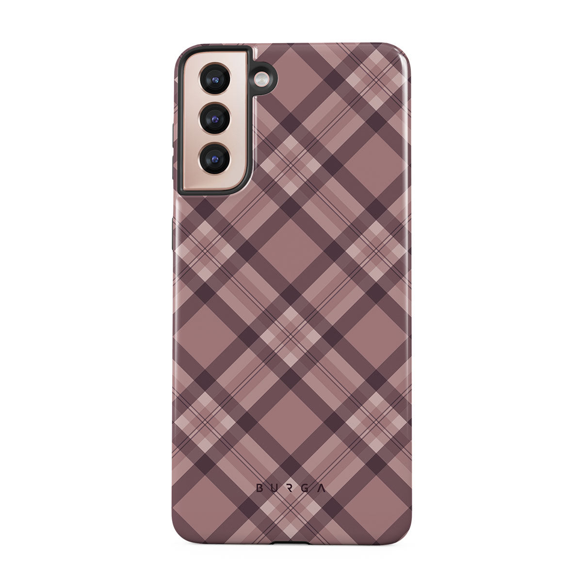 Made for those who hustle hard and look sharp. Our ASAP Samsung Galaxy S21 Plus phone case design features a sleek rosé-gray background with diagonal plaid in soft grey and deep pink—mixing modern flair with understated elegance. For the pros who know that style and speed go hand-in-hand.