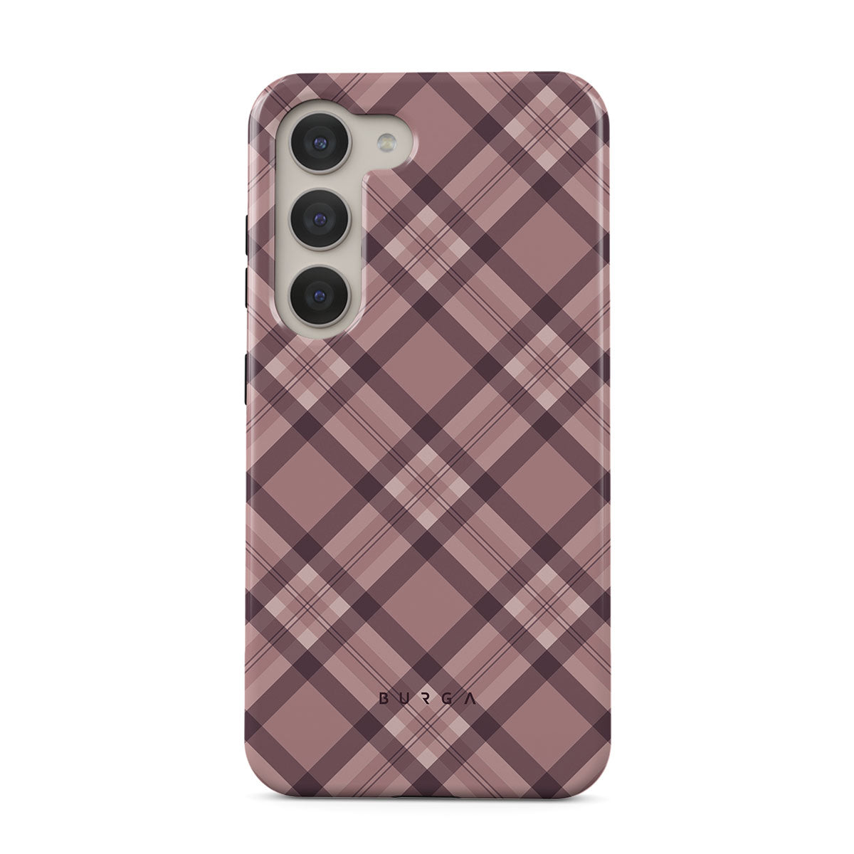 Made for those who hustle hard and look sharp. Our ASAP Samsung Galaxy S23 phone case design features a sleek rosé-gray background with diagonal plaid in soft grey and deep pink—mixing modern flair with understated elegance. For the pros who know that style and speed go hand-in-hand.