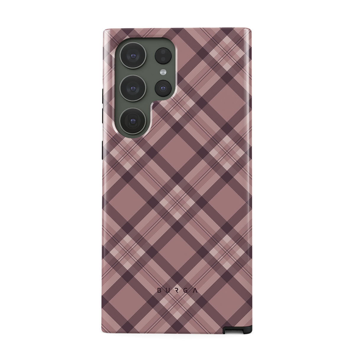 Made for those who hustle hard and look sharp. Our ASAP Samsung Galaxy S23 Ultra phone case design features a sleek rosé-gray background with diagonal plaid in soft grey and deep pink—mixing modern flair with understated elegance. For the pros who know that style and speed go hand-in-hand.