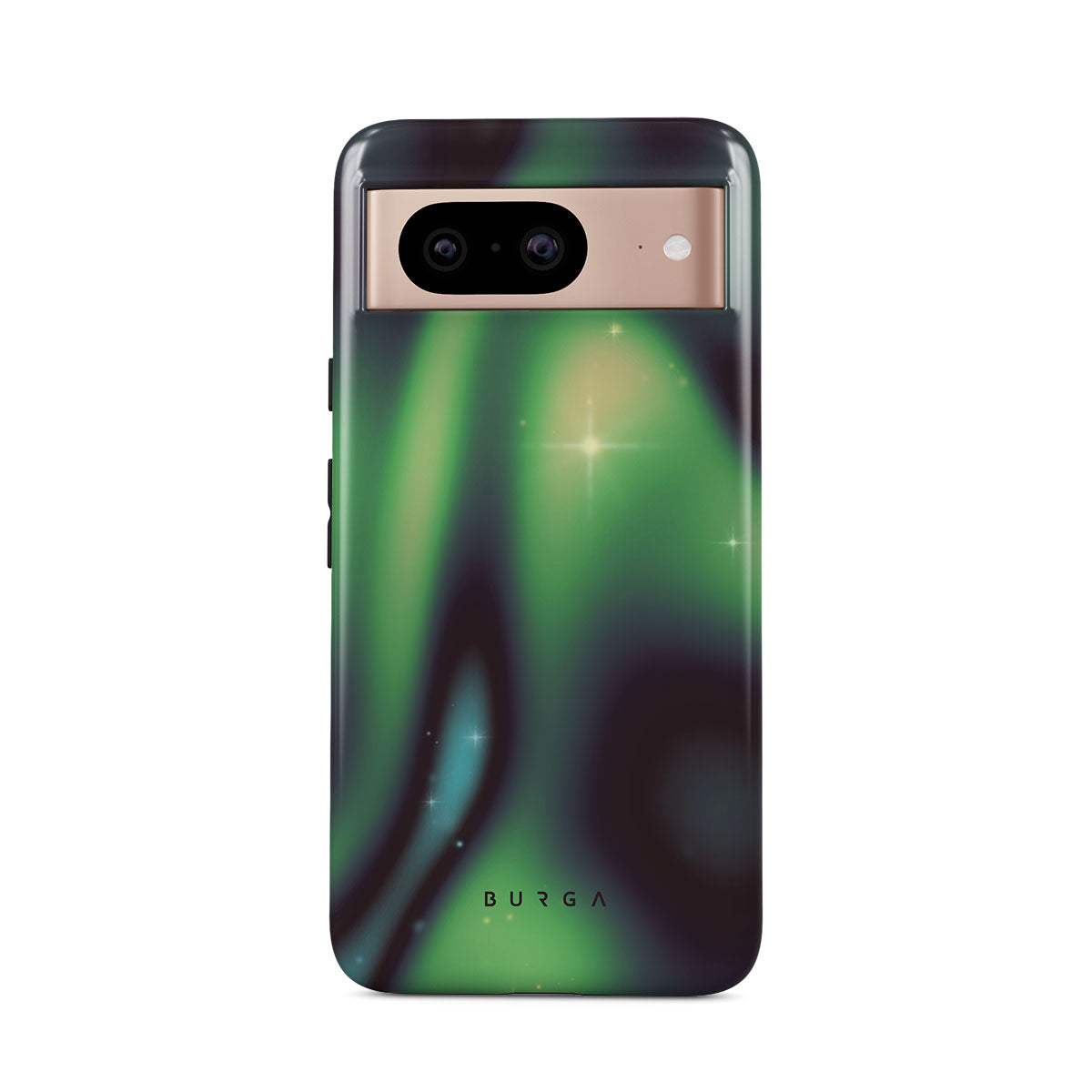 Nature's magic shines through in a mysterious display of lights. Delicate colors intertwine in a ballet of beauty and grace. Poetic harmony is captured with each swirl. It feels as if you're holding a piece of the night sky. Experience the serene grandeur of the Aurora Google Pixel 8 phone case design.