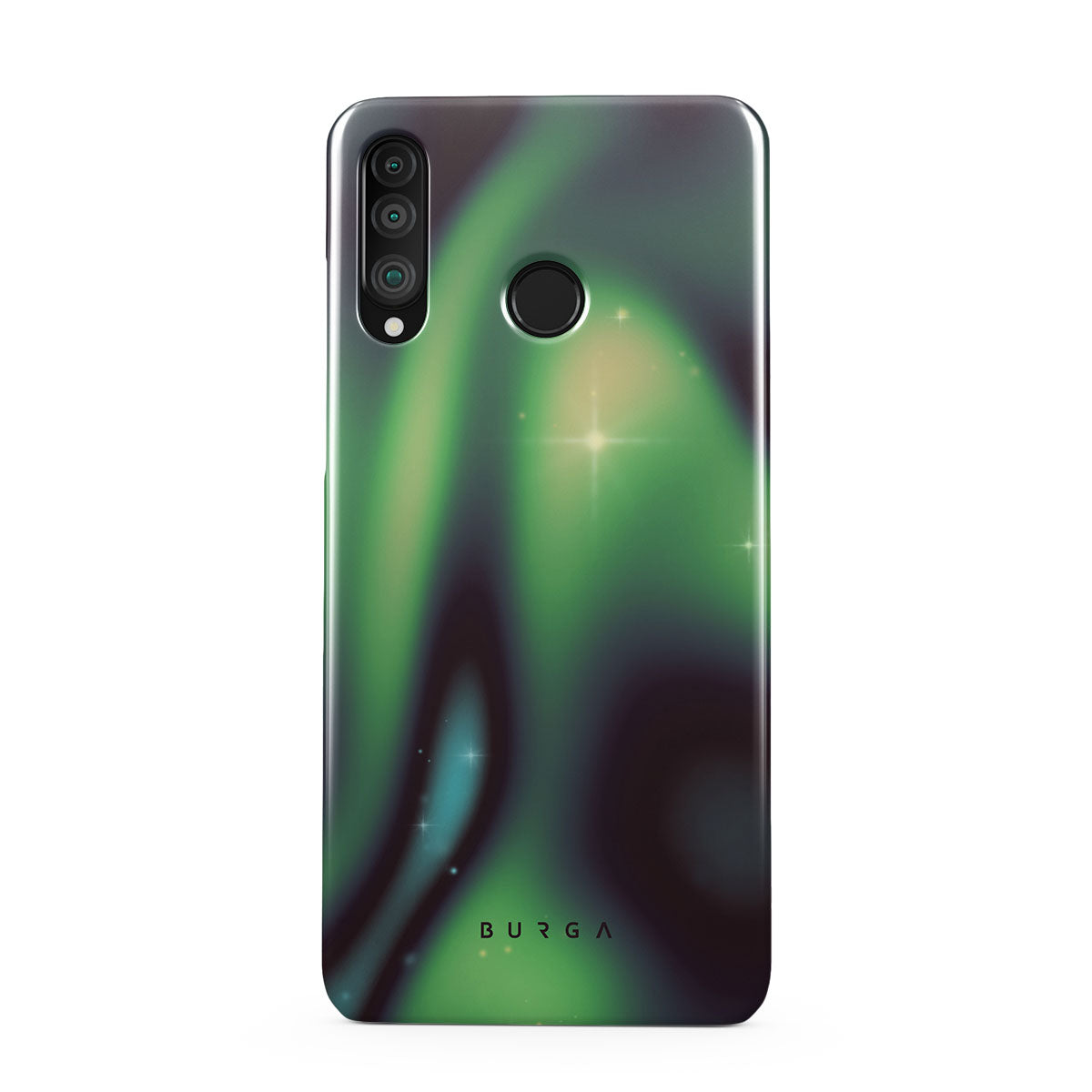 Nature's magic shines through in a mysterious display of lights. Delicate colors intertwine in a ballet of beauty and grace. Poetic harmony is captured with each swirl. It feels as if you're holding a piece of the night sky. Experience the serene grandeur of the Aurora Huawei P30 Lite phone case design.