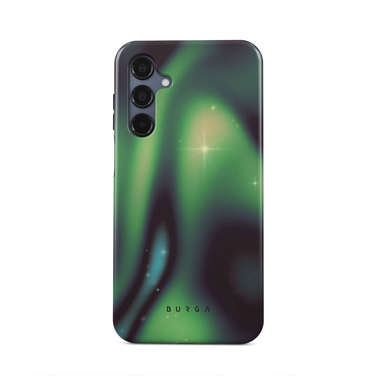 Nature's magic shines through in a mysterious display of lights. Delicate colors intertwine in a ballet of beauty and grace. Poetic harmony is captured with each swirl. It feels as if you're holding a piece of the night sky. Experience the serene grandeur of the Aurora Samsung Galaxy A16 phone case design.