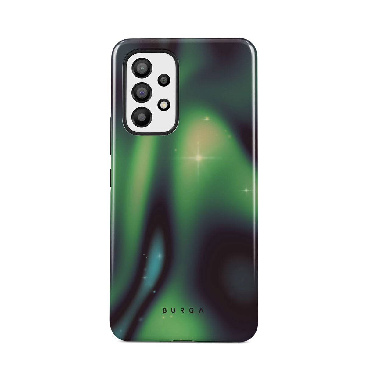 Nature's magic shines through in a mysterious display of lights. Delicate colors intertwine in a ballet of beauty and grace. Poetic harmony is captured with each swirl. It feels as if you're holding a piece of the night sky. Experience the serene grandeur of the Aurora Samsung Galaxy A33 phone case design.
