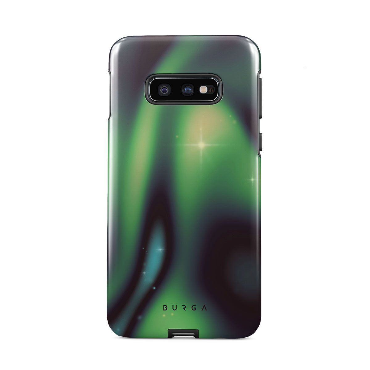 Nature's magic shines through in a mysterious display of lights. Delicate colors intertwine in a ballet of beauty and grace. Poetic harmony is captured with each swirl. It feels as if you're holding a piece of the night sky. Experience the serene grandeur of the Aurora Samsung Galaxy S10E phone case design.
