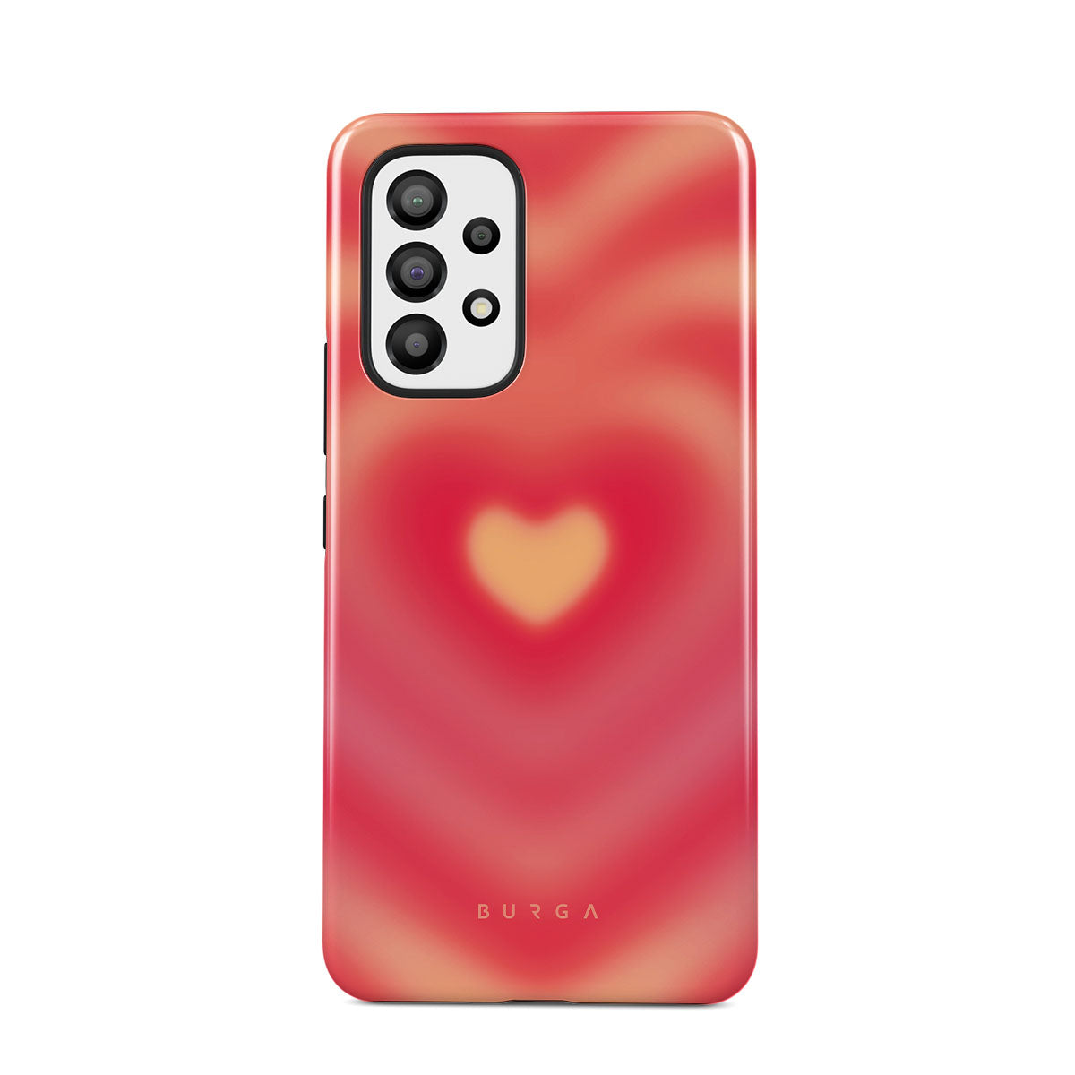 Feel the warmth of Awakening. With its glowing pink-orange shades and a heart at the center, this design is an emblem of one's inner essence. The Awakening Samsung Galaxy A53 phone case design reminds us of the soul's luminous rebirth, capturing the spirit of the Aura Collection and igniting the magic within.