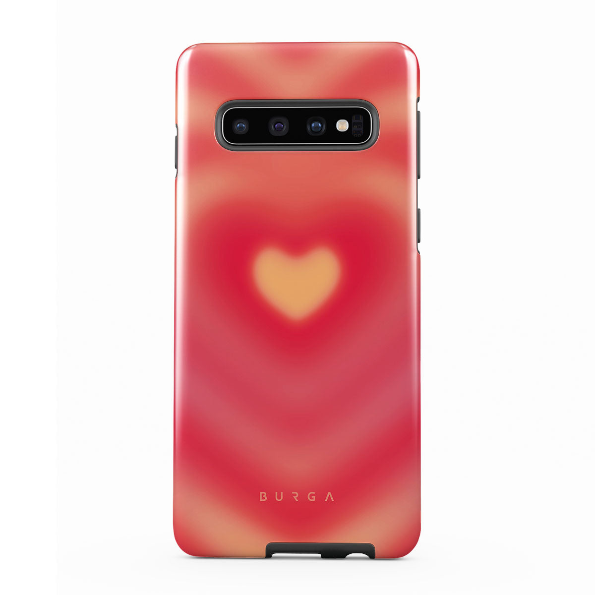 Feel the warmth of Awakening. With its glowing pink-orange shades and a heart at the center, this design is an emblem of one's inner essence. The Awakening Samsung Galaxy S10 4G phone case design reminds us of the soul's luminous rebirth, capturing the spirit of the Aura Collection and igniting the magic within.