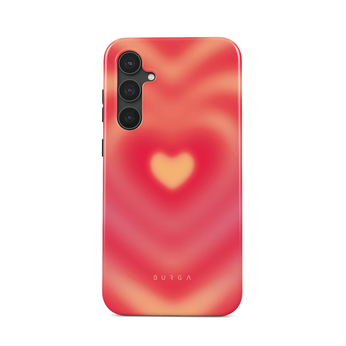 Feel the warmth of Awakening. With its glowing pink-orange shades and a heart at the center, this design is an emblem of one's inner essence. The Awakening Samsung Galaxy S23 FE phone case design reminds us of the soul's luminous rebirth, capturing the spirit of the Aura Collection and igniting the magic within.