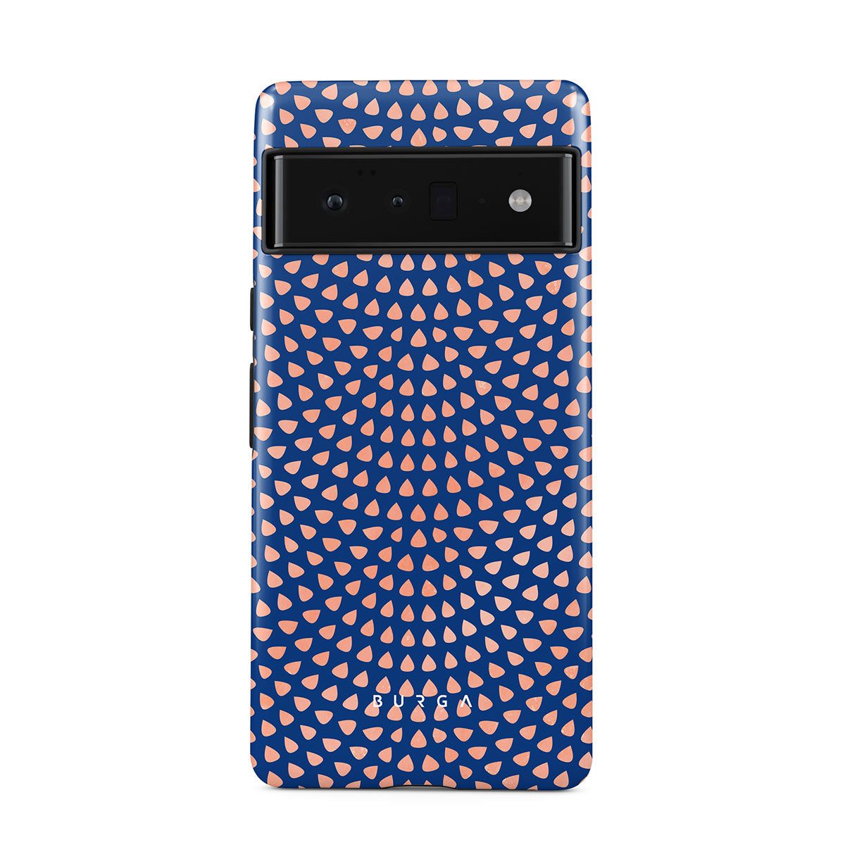 Rose gold teardrops meet a deep shade of blue in our Azure Waters Google Pixel 6 Pro phone case and create the duo worth taking with you every evening out. Add a touch of strictness with the symmetrical teardrops pattern paving the way and keeping your phone out of harm's way with the case that is as protective as it is beautiful.