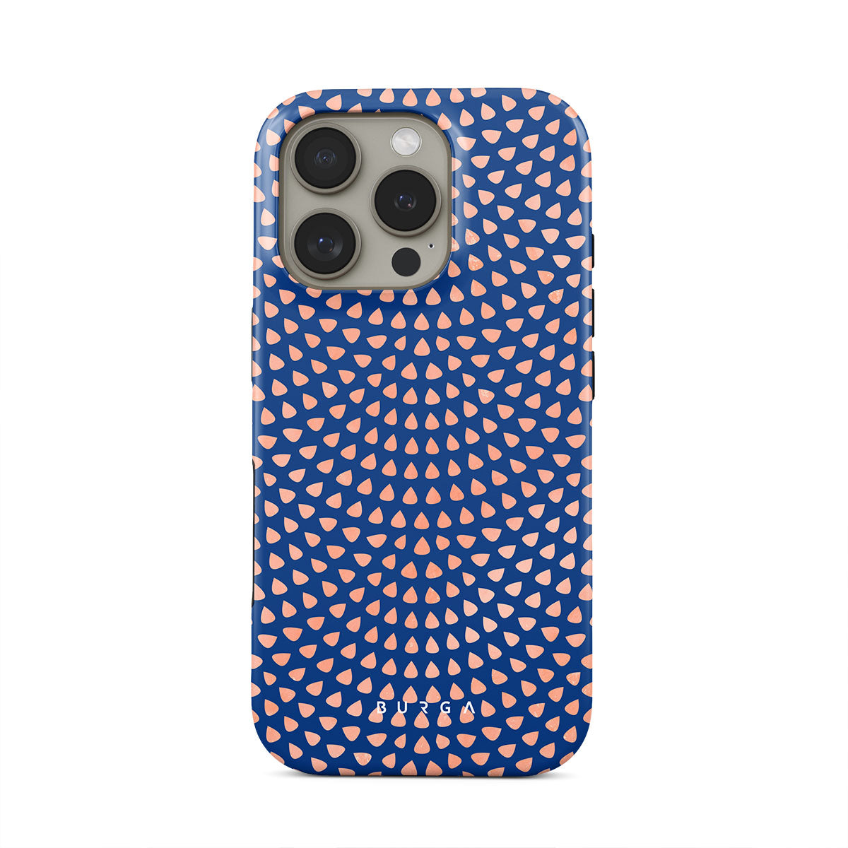 Rose gold teardrops meet a deep shade of blue in our Azure Waters iPhone 16 Pro phone case and create the duo worth taking with you every evening out. Add a touch of strictness with the symmetrical teardrops pattern paving the way and keeping your phone out of harm's way with the case that is as protective as it is beautiful.
