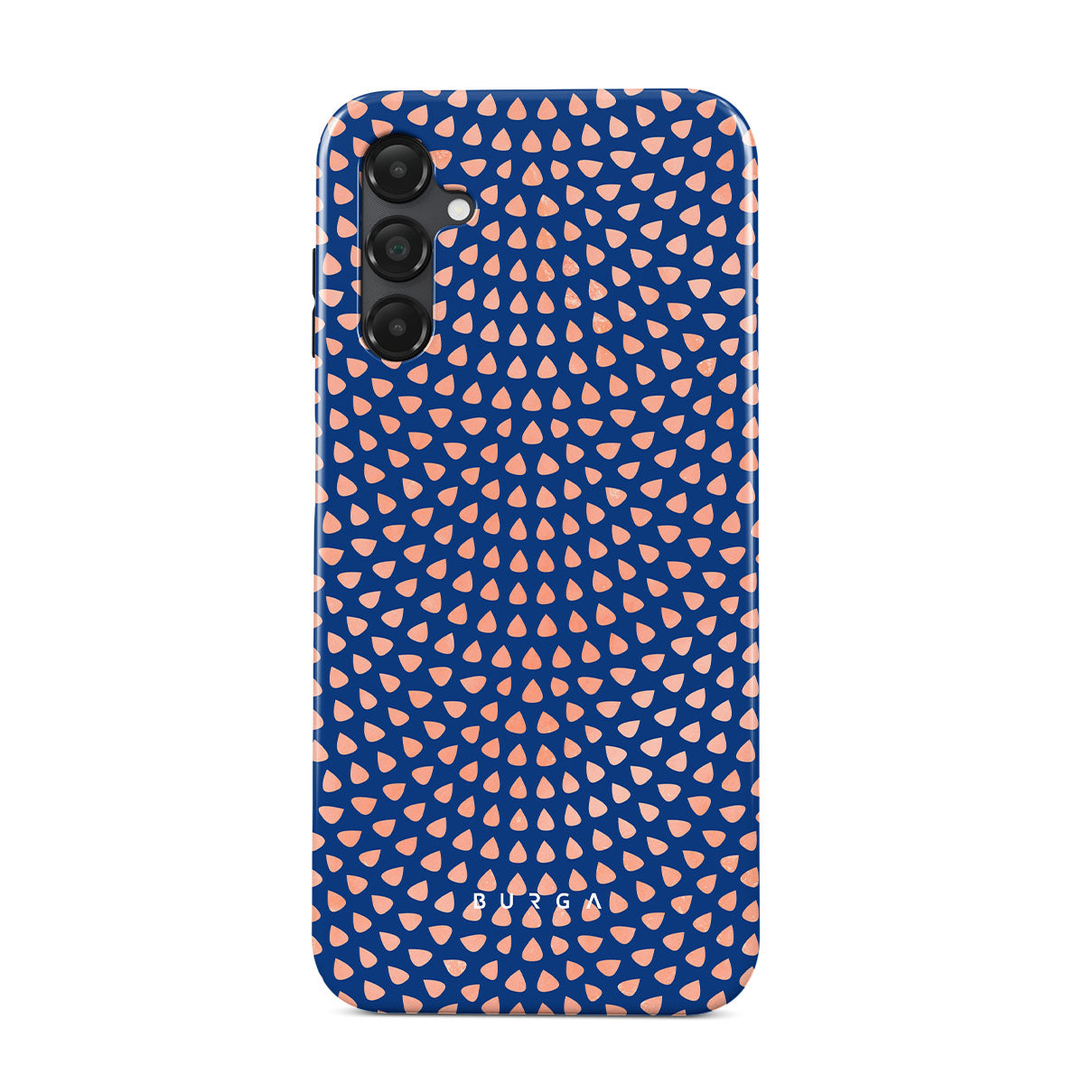 Rose gold teardrops meet a deep shade of blue in our Azure Waters Samsung Galaxy A14 5G phone case and create the duo worth taking with you every evening out. Add a touch of strictness with the symmetrical teardrops pattern paving the way and keeping your phone out of harm's way with the case that is as protective as it is beautiful.