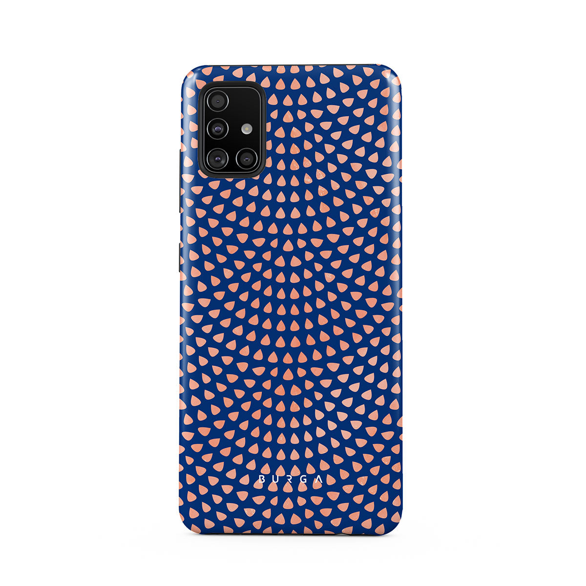Rose gold teardrops meet a deep shade of blue in our Azure Waters Samsung Galaxy A51 4G phone case and create the duo worth taking with you every evening out. Add a touch of strictness with the symmetrical teardrops pattern paving the way and keeping your phone out of harm's way with the case that is as protective as it is beautiful.