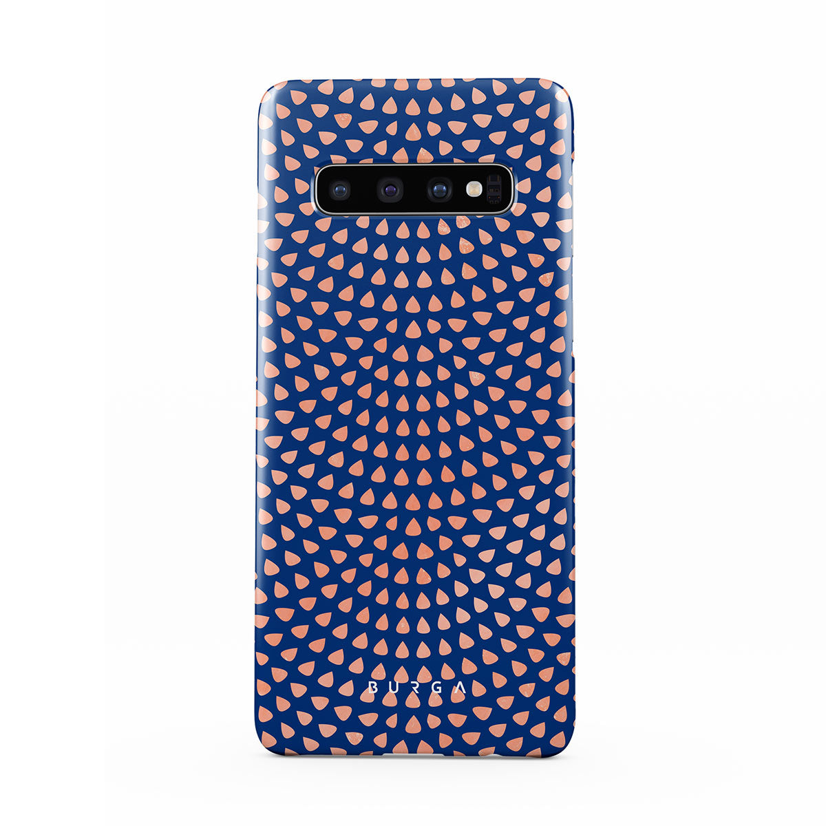 Rose gold teardrops meet a deep shade of blue in our Azure Waters Samsung Galaxy S10 Plus phone case and create the duo worth taking with you every evening out. Add a touch of strictness with the symmetrical teardrops pattern paving the way and keeping your phone out of harm's way with the case that is as protective as it is beautiful.