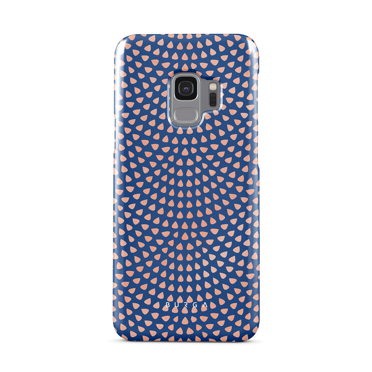 Rose gold teardrops meet a deep shade of blue in our Azure Waters Samsung Galaxy S9 phone case and create the duo worth taking with you every evening out. Add a touch of strictness with the symmetrical teardrops pattern paving the way and keeping your phone out of harm's way with the case that is as protective as it is beautiful.