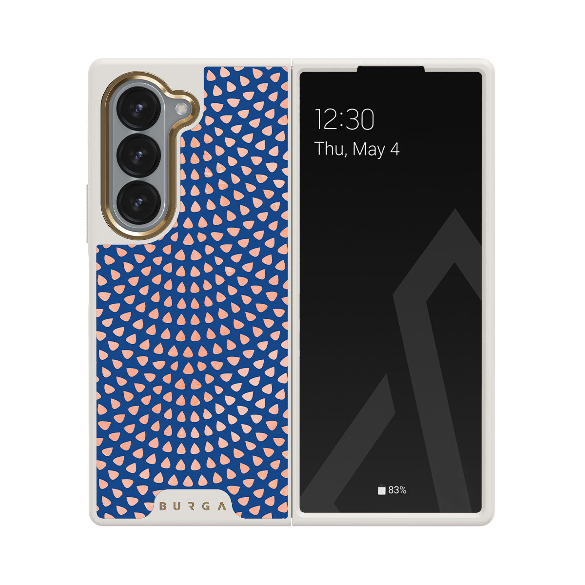 Rose gold teardrops meet a deep shade of blue in our Azure Waters Samsung Galaxy Z Fold 6 phone case and create the duo worth taking with you every evening out. Add a touch of strictness with the symmetrical teardrops pattern paving the way and keeping your phone out of harm's way with the case that is as protective as it is beautiful.