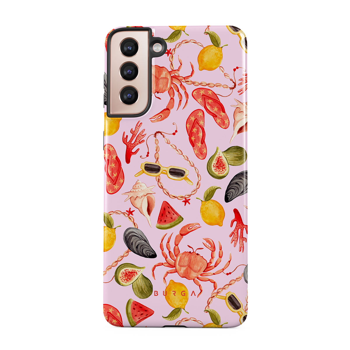 Samsung Galaxy S21 Plus phone case design is a cocktail of sun, sass, and good vibes, all shaken—not stirred.
