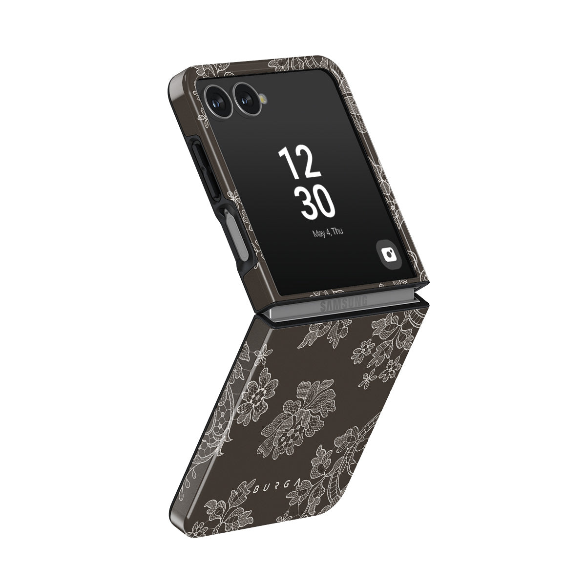 White flowers on a dark background give you that perfect blend of edgy and elegant. Our Bandida Samsung Galaxy Z Flip 7 phone case design is made for the style rebel who’s ready to break all the fashion rules.