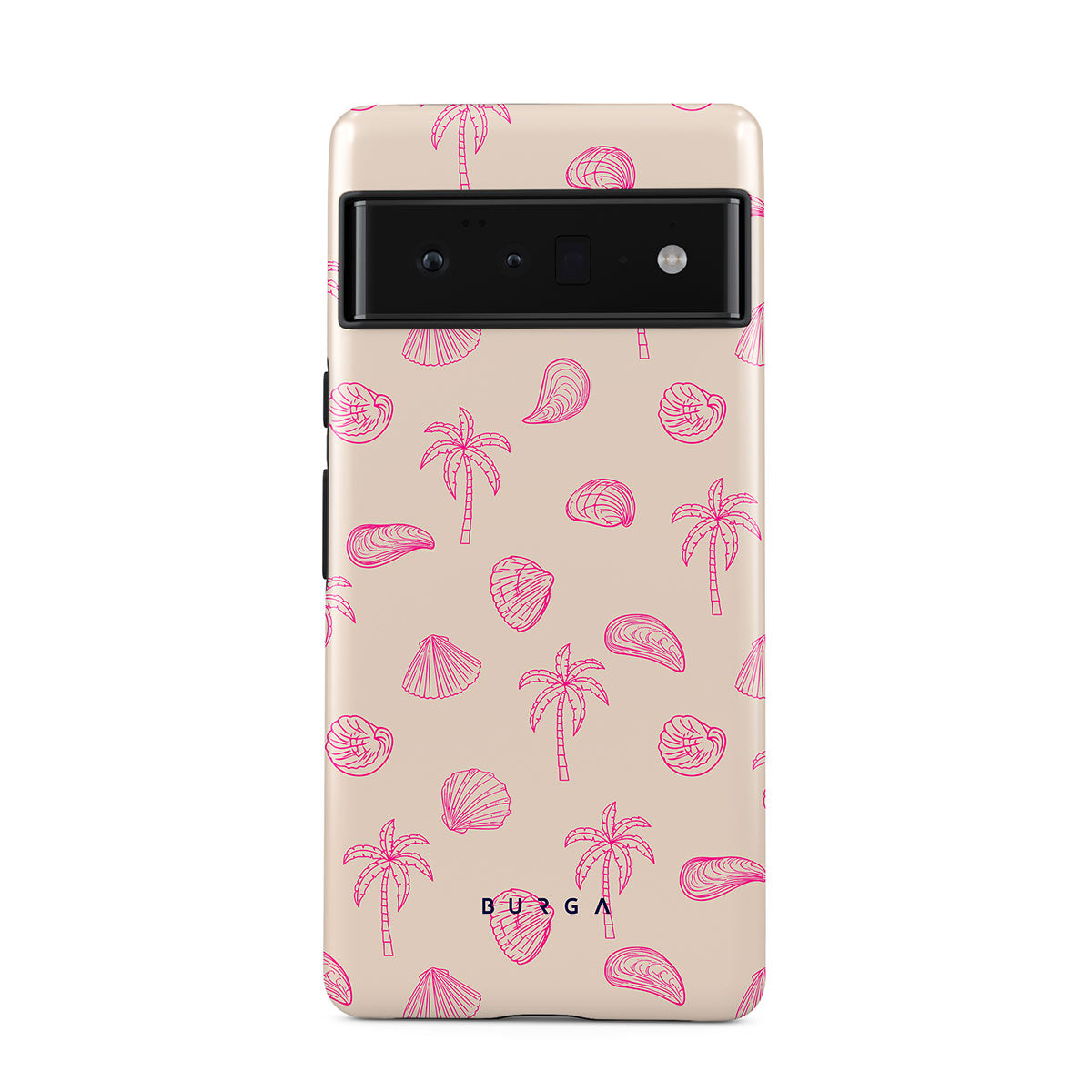 Lovely, beachy, and pink is what we can say about our Beach Please Google Pixel 6 Pro phone case design. The playful pattern of palms and seashells will look cute in your summer selfies. Add that playful touch to your everyday life and keep your phone safe from scratches the sand can make!