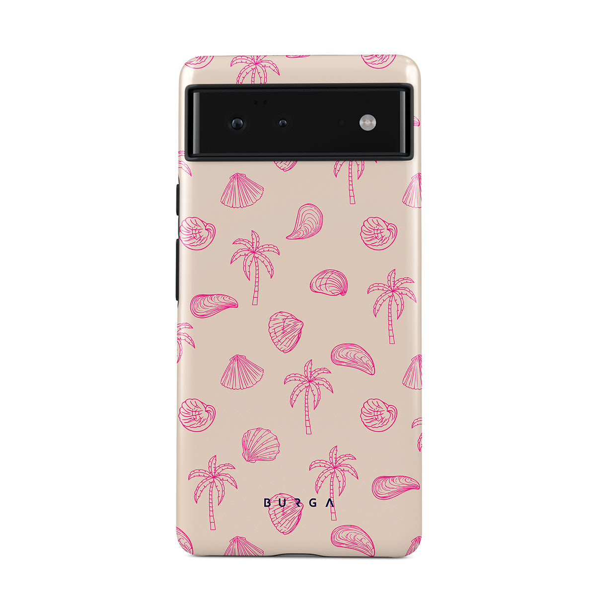 Lovely, beachy, and pink is what we can say about our Beach Please Google Pixel 6a phone case design. The playful pattern of palms and seashells will look cute in your summer selfies. Add that playful touch to your everyday life and keep your phone safe from scratches the sand can make!