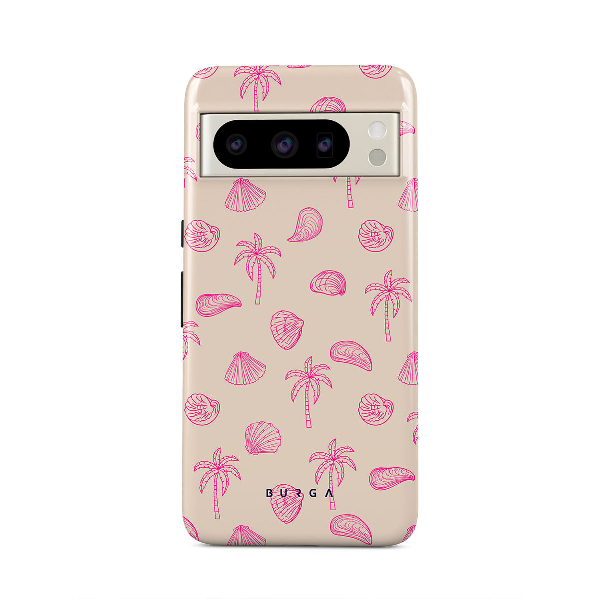 Lovely, beachy, and pink is what we can say about our Beach Please Google Pixel 8 Pro phone case design. The playful pattern of palms and seashells will look cute in your summer selfies. Add that playful touch to your everyday life and keep your phone safe from scratches the sand can make!