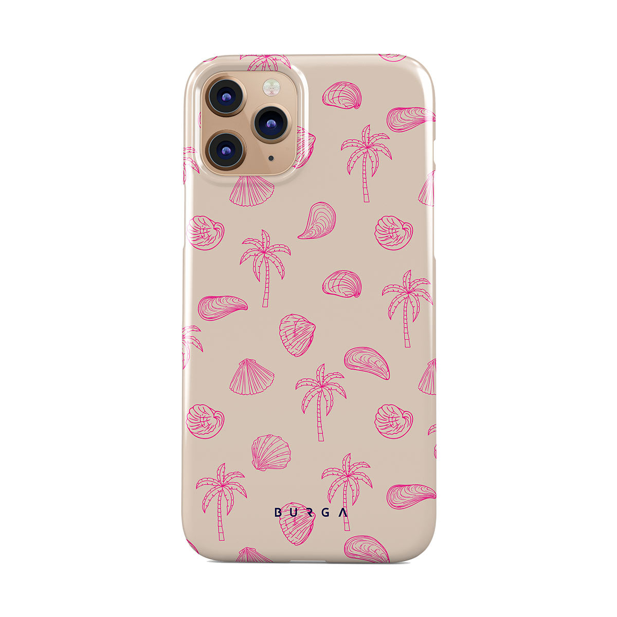 Lovely, beachy, and pink is what we can say about our Beach Please iPhone 11 Pro phone case design. The playful pattern of palms and seashells will look cute in your summer selfies. Add that playful touch to your everyday life and keep your phone safe from scratches the sand can make!
