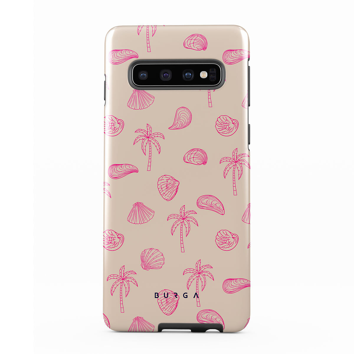 Lovely, beachy, and pink is what we can say about our Beach Please Samsung Galaxy S10 4G phone case design. The playful pattern of palms and seashells will look cute in your summer selfies. Add that playful touch to your everyday life and keep your phone safe from scratches the sand can make!