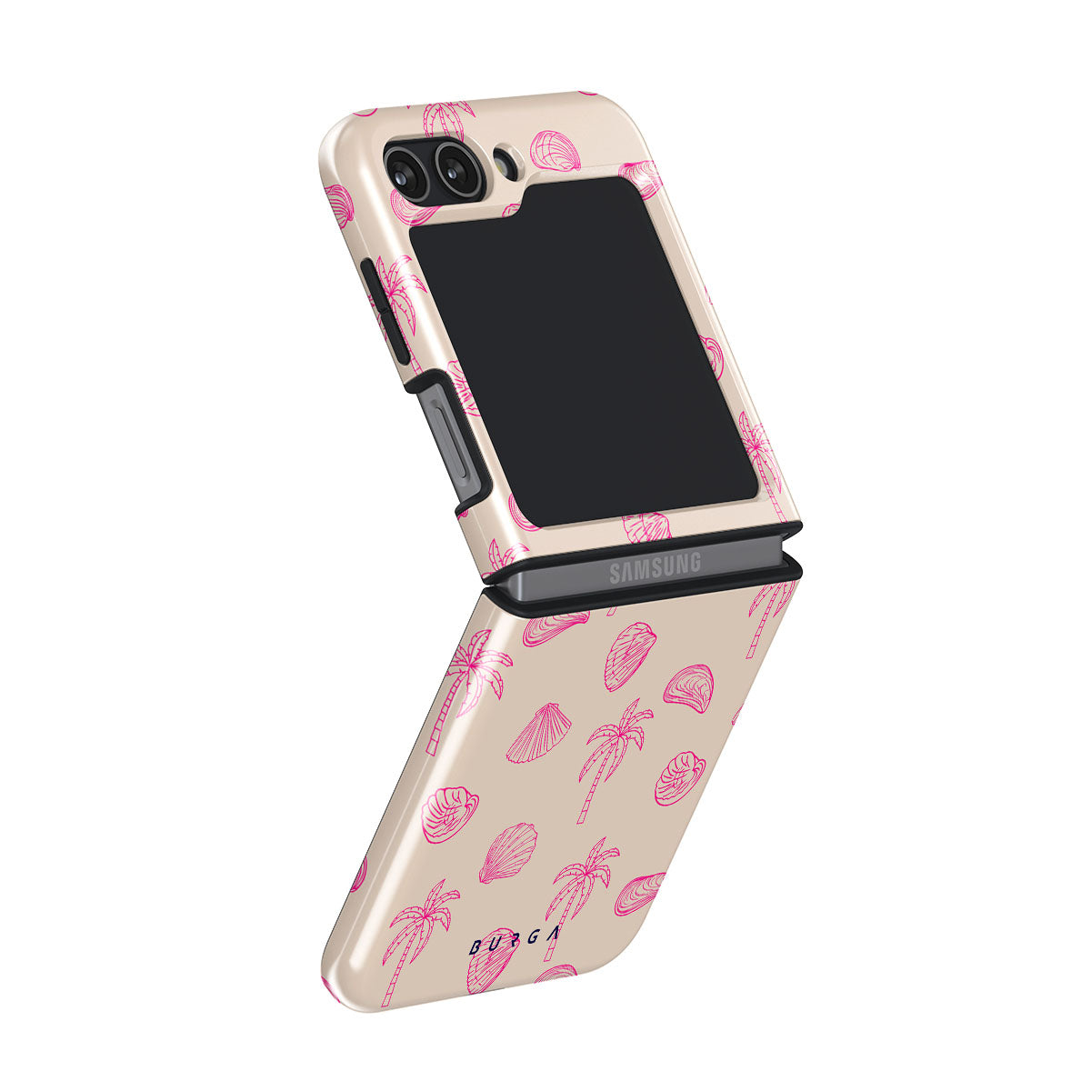 Lovely, beachy, and pink is what we can say about our Beach Please Samsung Galaxy Z Flip 5 phone case design. The playful pattern of palms and seashells will look cute in your summer selfies. Add that playful touch to your everyday life and keep your phone safe from scratches the sand can make!