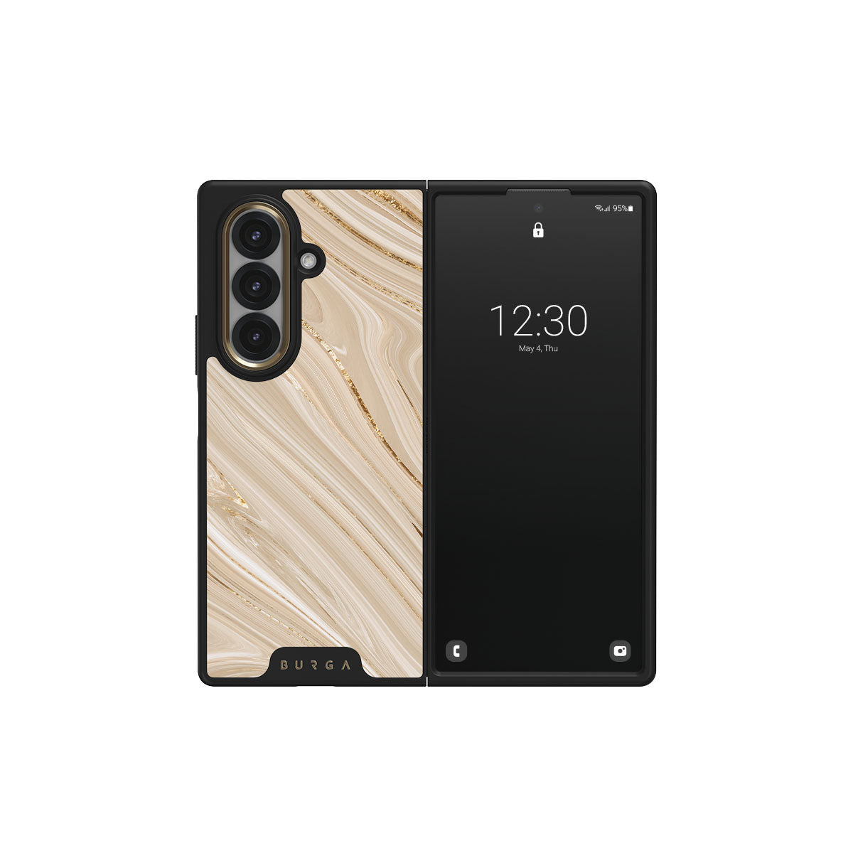 The Full Glam Samsung Galaxy Z Fold 7 phone case exudes elegance and softness in the beige color scheme with golden accents. The delicate design of the phone case will enhance your style and keep your phone safe and sound while doing that.