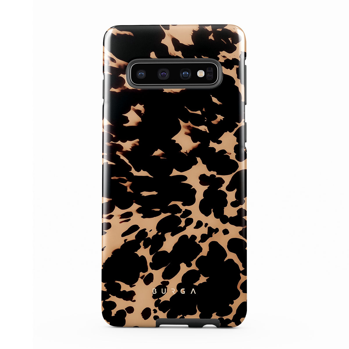 Bold and fearless, just like your return to the office. Dark coffee shapes stretch across a soft beige-yellow canvas, blending wild energy with refined style. Our Betty Samsung Galaxy S10 4G phone case design is perfect for making a statement as you return to the spotlight.