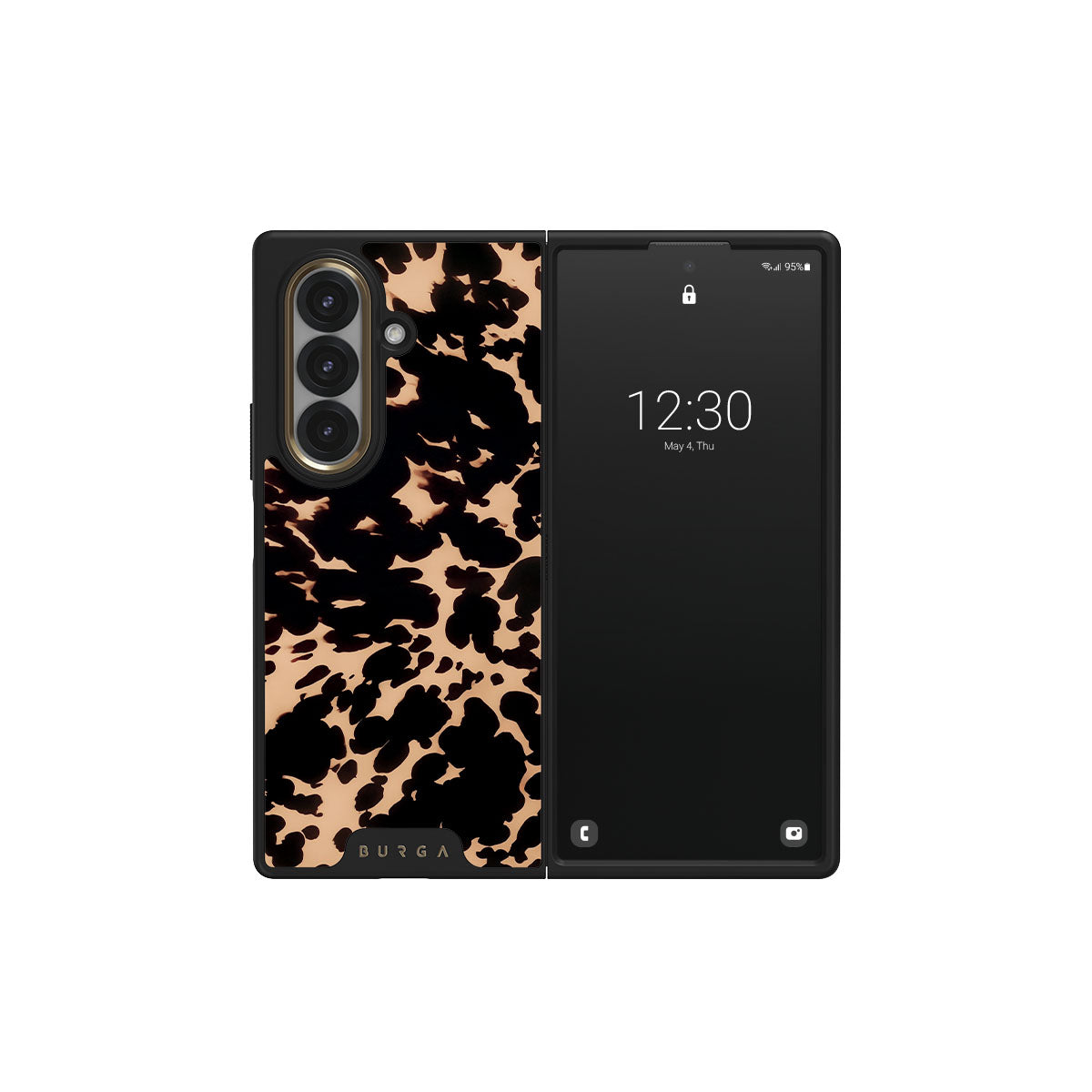 Bold and fearless, just like your return to the office. Dark coffee shapes stretch across a soft beige-yellow canvas, blending wild energy with refined style. Our Betty Samsung Galaxy Z Fold 7 phone case design is perfect for making a statement as you return to the spotlight.