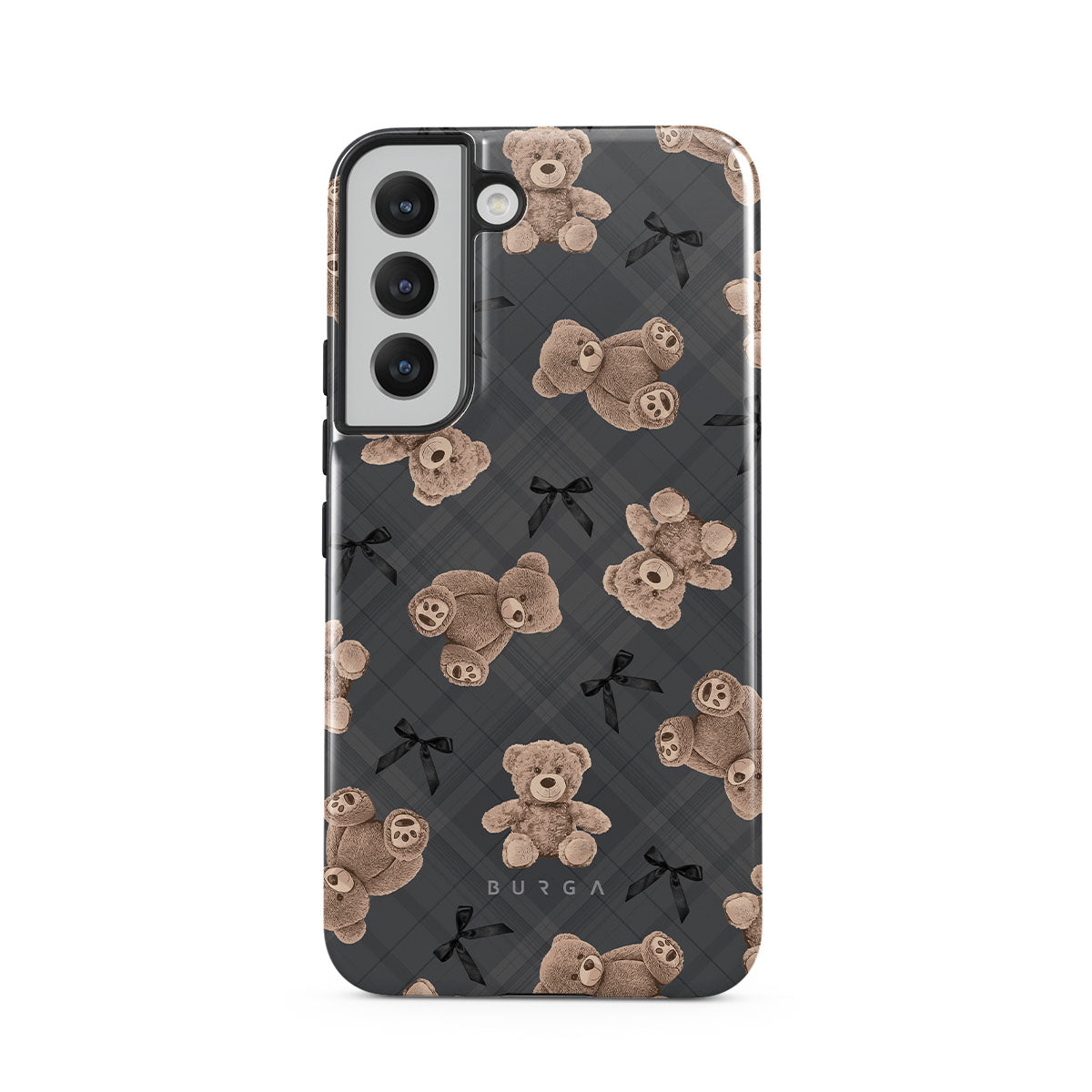 A design blending innocence and sophistication. With teddy bears and a chic gray background, BFF is a throwback to the comforting nostalgia of youth, updated with a touch of modern glam. This design will make you and your Samsung Galaxy S22 phone case inseparable companions, just like the best of friends.