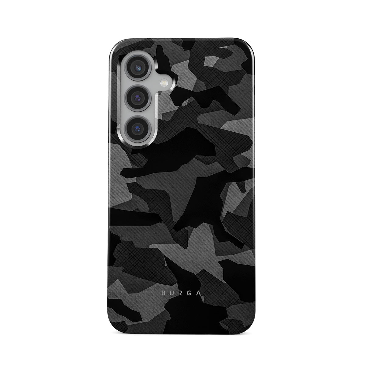 Sometimes, all you need is a possibility to blend into nature. With our Night Black Camo Samsung Galaxy S24 Plus phone case, use black camouflage as a way to express your curious side or blend in with the surroundings. A stylish accessory can offer heavy-duty protection too!