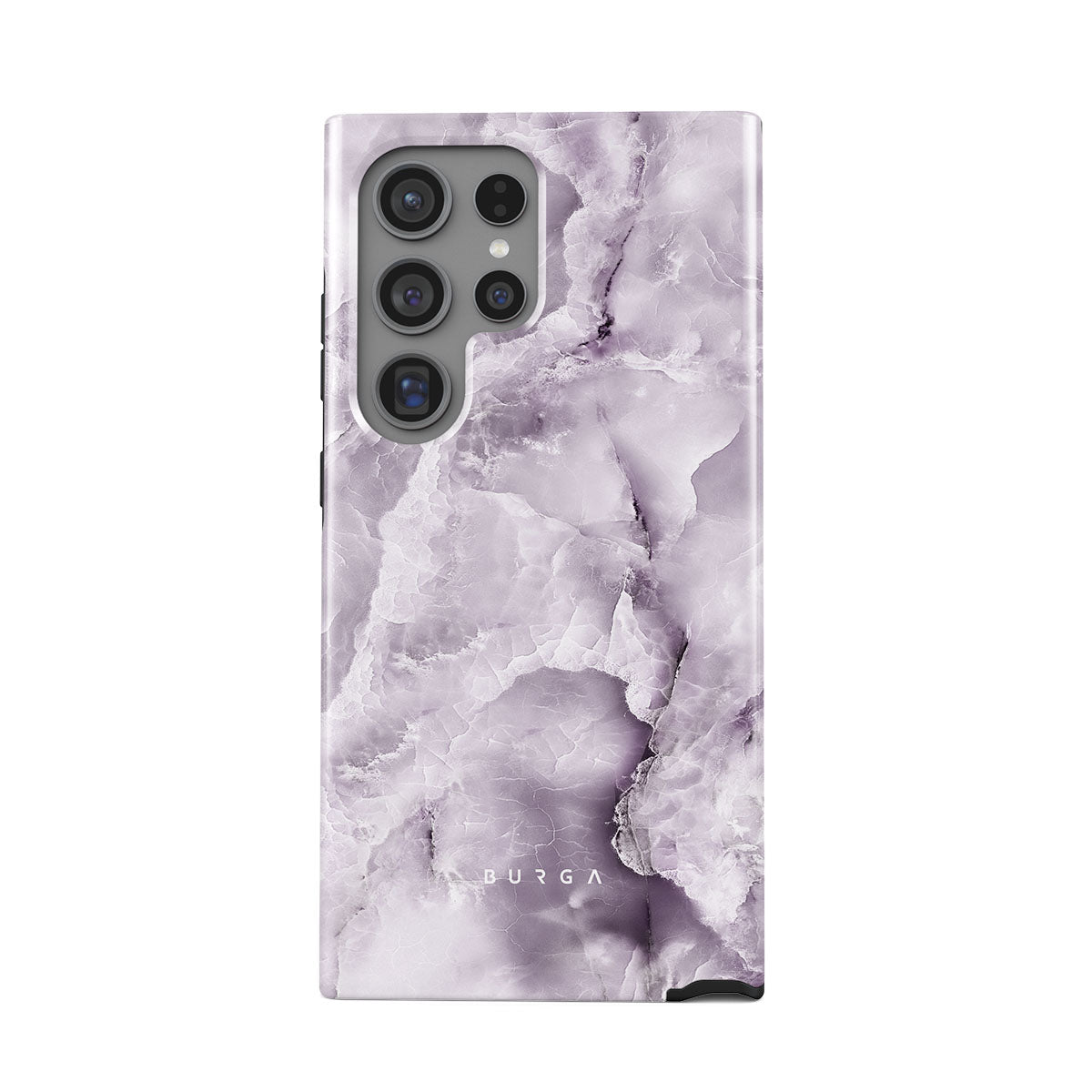 The gray violet-colored Black Currant Samsung Galaxy S24 Ultra phone case showcases a soft marble design that will add a touch of luxury to your style. The color itself represents the future and dreams, yet the nature of it offers a calming effect. Keep a piece of serenity in your hands.