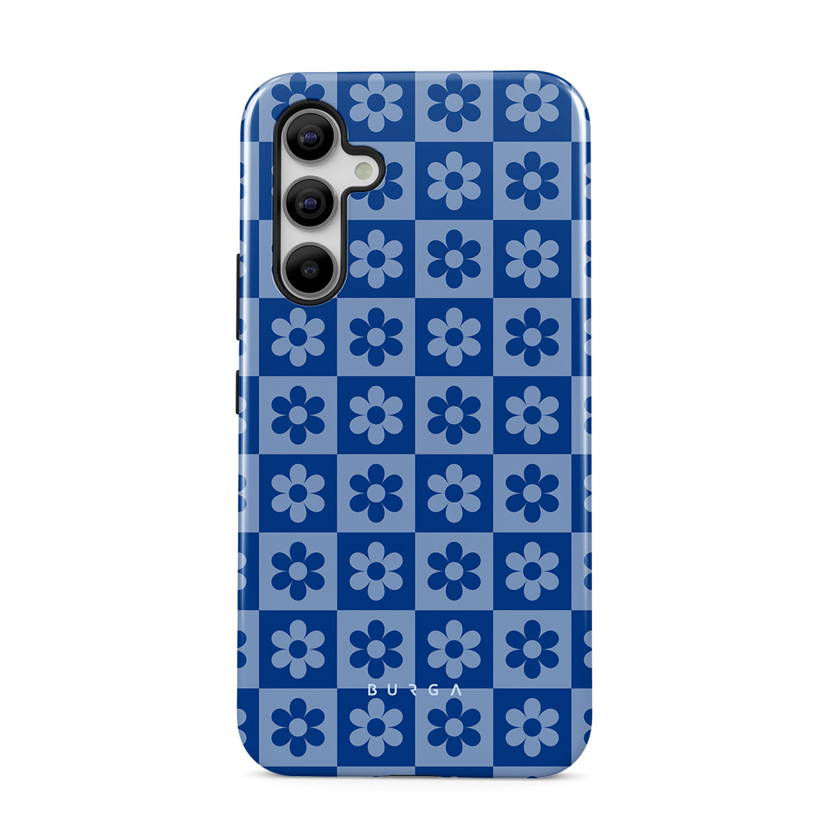 A true statement design, featuring a captivating checkered pattern with icy blue tones and a beautiful flower adorning each square. Our Samsung Galaxy A55 phone case not only offers reliable protection for your device but also captures the essence of the fun and carefree Y2K era. Embrace your inner flower child with the Bloom Boom phone case and let your tech bloom with style.