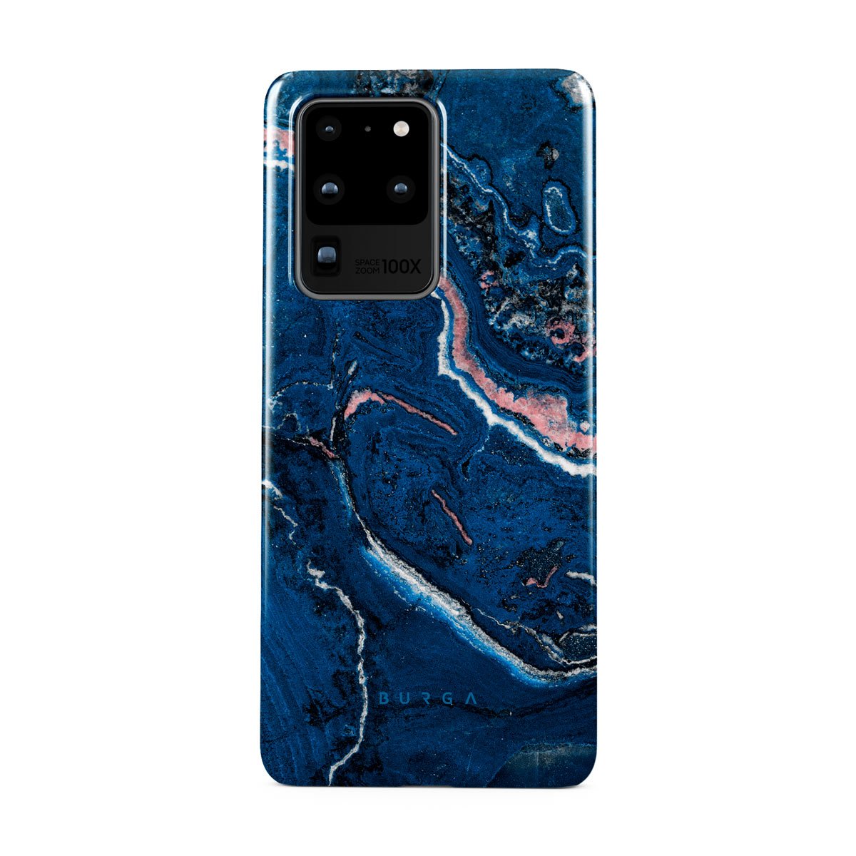 Electric indigo blue meets white, and pastel pink swirls in a unique marble pattern in our Blue Lagoon Samsung Galaxy S20 Ultra 4G / 5G phone case. The modern take on a blue marble trend will look aesthetically pleasing on your device while offering durable protection from any falls.