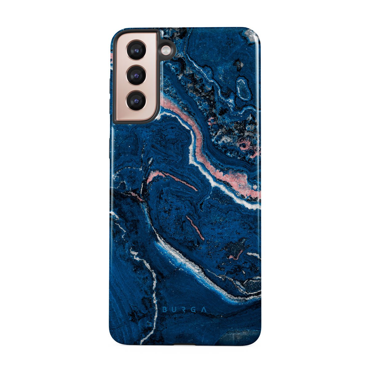 Electric indigo blue meets white, and pastel pink swirls in a unique marble pattern in our Blue Lagoon Samsung Galaxy S21 Plus phone case. The modern take on a blue marble trend will look aesthetically pleasing on your device while offering durable protection from any falls.
