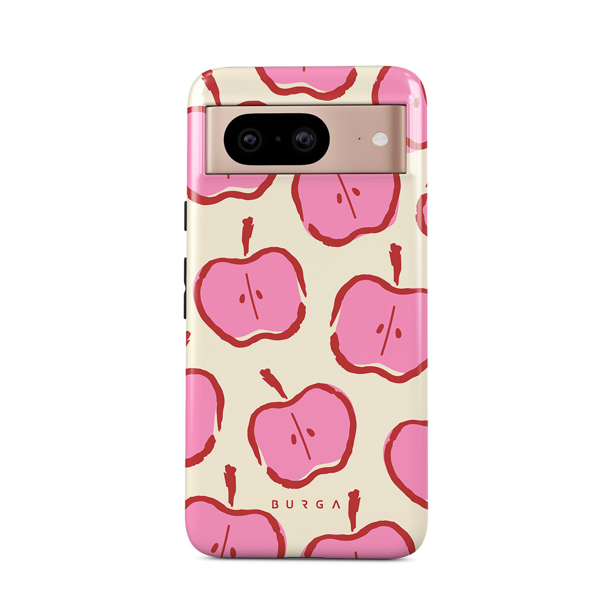 Our Bon Appétit Google Pixel 8 phone case design makes every day feel like a magical adventure filled with sweet surprises. The playful pink hues of the apples stand out brilliantly against the serene cream background, creating a captivating and enchanting visual.
